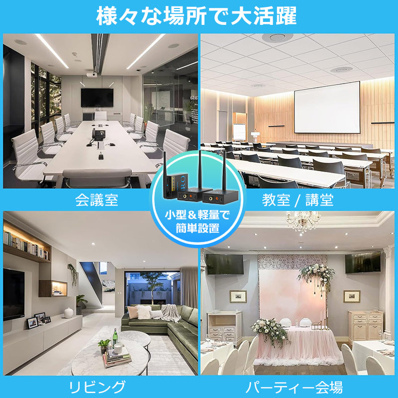 | パッケージ内容 | ワイヤレスオーディオ送信機/ワイヤレスオーディオ受信機x2/USB充電アダプタx3/光デジタルケーブル x3/3.5mmオーディオケーブルx3USB-C充電ケーブルx3/アンテナ x3/マニュアル | |||||