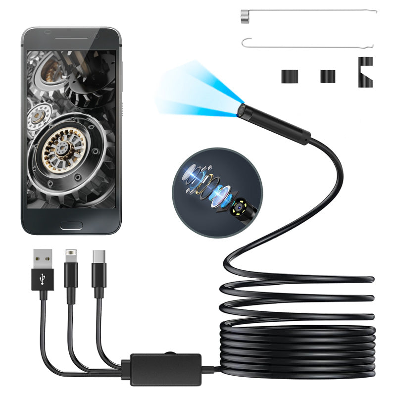 | 商品の特徴 | ■3端子対応内視鏡 このファイバースコープは、USB-A/USB-C/ライトニングの異なる3端子を搭載しているので、android端末からiPhone、iPadといったiOS端末、ノートPC等で幅広く使用することができます。無料ダウンロードできる専用アプリでリアルタイムで映像の確認、静止画撮影、録画、撮った静止画や動画の再生が可能。管やチューブ、狭い隙間や機械の中の点検、紛失物探しに役立ちます。 ■5.5mm極細レンズ&1920P HD画素 超強度CMOSカメラは、1920*1080PのHD高画素で対象物を鮮明に見ることが可能です。 レンズに輝度調整可能なLEDライトが搭載され、明るさを調整でき 水中や、暗いところでも観察することができます。 ■IP67防水仕様 IP67防水デザインなので、トイレや台所、濡れたパイプ内、バスルームなどの水回りから アクアリウムや水槽などで魚の観察に使用することも可能です ■LED調光スイッチ搭載 このマイクロスコープは、ケーブル部分にローラーキー式の調光コントローラーを搭載しているので 暗い場所でも自由にライトの明るさを調整し、紛失物の発見に役立ちます ■形状記憶ワイヤーケーブル ケーブルに内蔵されたフレキシブルハードワイヤーにより、ケーブルを自由に変形して形状を維持したまま動かすことが可能です。 ■便利なアタッチメント付属 サイドミラー、磁石アタッチメント、フックアタッチメント等、この内視鏡カメラにはアタッチメントが多数付属されており、カメラで見るだけでなく、探したものを磁石で吸着したり引っ掛けたりして改修することが可能 ■超簡単接続 本体、説明書、パッケージのQRコードから「i-Camera」アプリを端末にダウンロードしてインストールします。ファイバースコープのケーブルをスマートフォン等の端末に接続するだけで簡単にお使いになれます。Wi-FiやBluetooth経由で接続する手間もありません。スマホから電源供給なので、あらかじめ製品を充電する必要もありません。 |