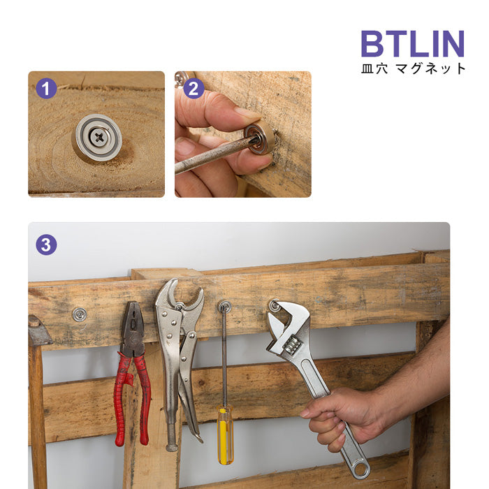 ■超強力マグネット ネジ穴付き丸型ネオジム磁石。超強力な性能を持ち、最大荷重能力は9kg。 ■頑丈で使いやすい ネオジウム磁石は鋼の素材に内蔵されています。高品質な金属ボディは磁石を損傷から守り長持ちします。 工業、工芸、建築現場などで幅広く使われています。 ■取り付けが簡単 丸型磁石の中央には穴が開いており、セットのネジを使って、木戸、壁、テーブルなどの土台に固定することができます。または、小さなマグネットフックとして工具、金物、他の金属物を収納するのに便利です。 ■高級感漂うデザイン このマグネットは、全自動旋盤によって加工成型され、優美で洗練されたデザインで、鏡のような光沢に仕上がっています。 |